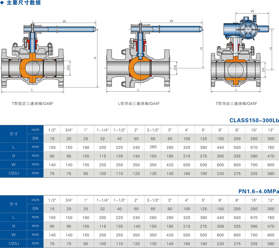 ③其中L型三通球阀只能连接相互正交的两条管道,不能同时保持第三条管道的相互连通,只起分配作用。