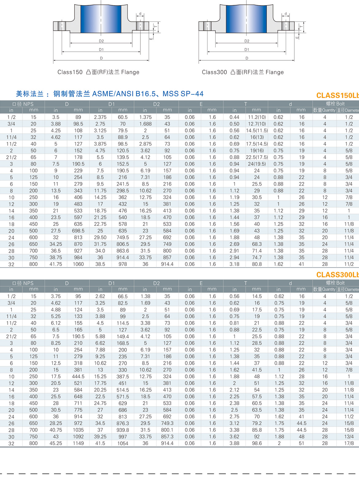 法兰尺寸表